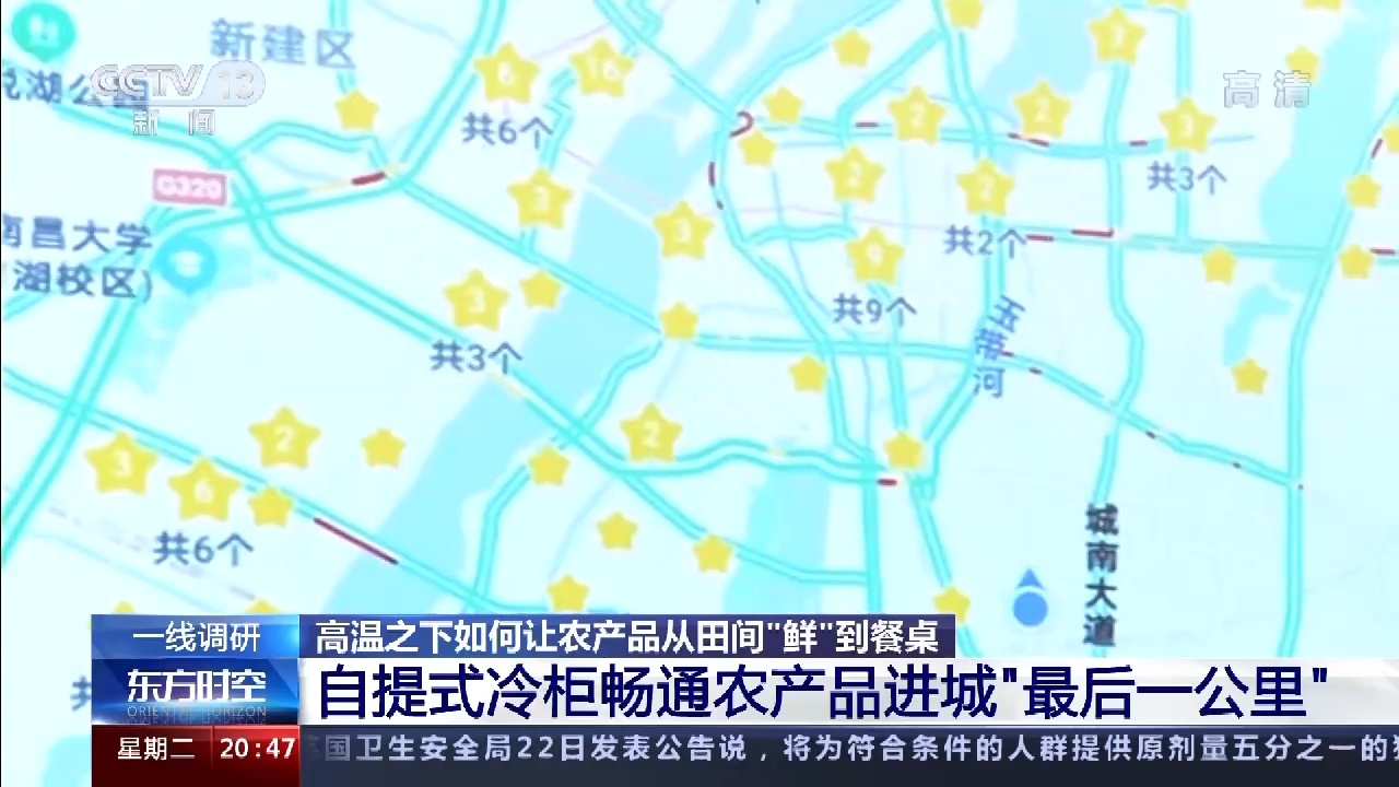江西台记者 郑文娟:我们先来看屏幕上的这张图,这是在江西南昌,100多辆冷链车,每天200多次的送货轨迹图,从这张图上,我们可以看到,这些冷链车几乎遍布了南昌的大街小巷。