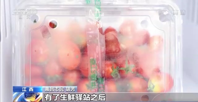 南昌市民 胡芳:今天早上下单买了一些蔬菜、水果还有排骨,中午就收到配送发的取件码了。因为我上班离家比较远,中午回去不太现实。有了生鲜驿站,就不用担心买的菜不新鲜了。