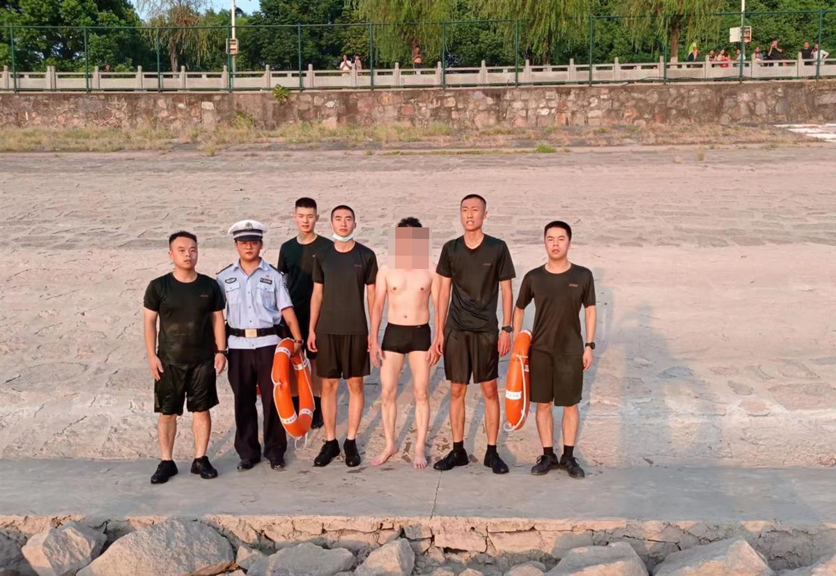 经过十几分钟的救援,当晚6时47分许,在岸上公安民警的协助下,武警战士成功将险些发生溺水的男子救起。