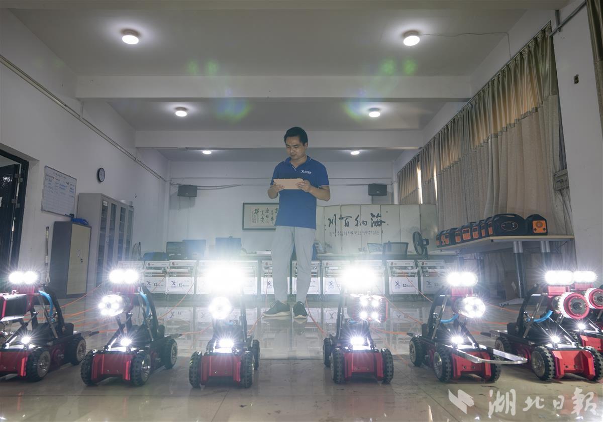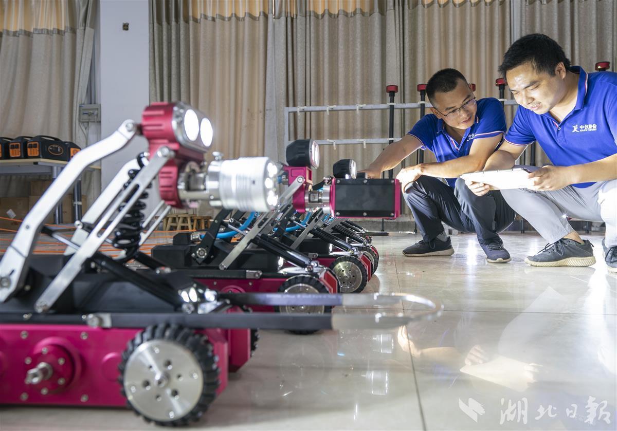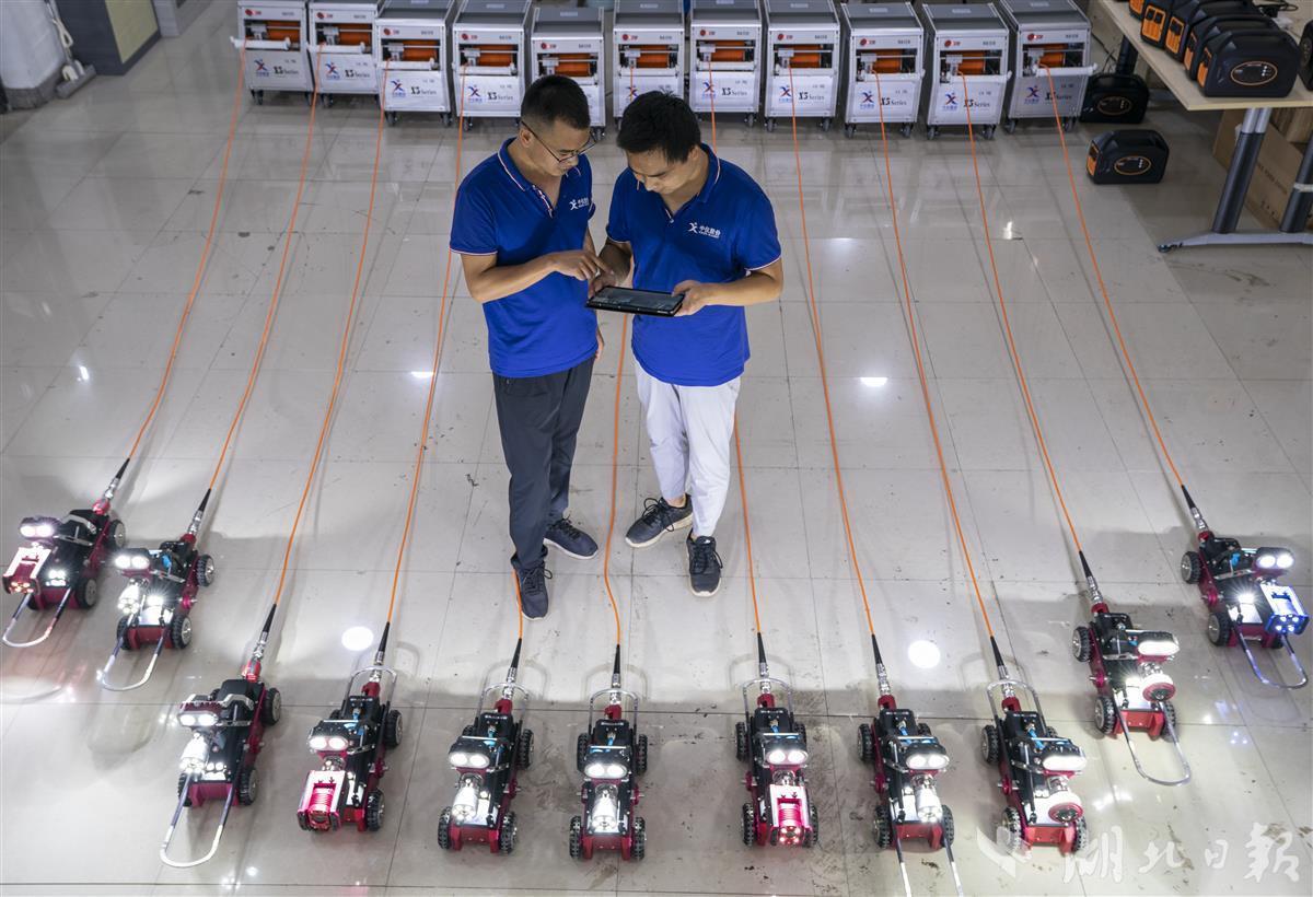 湖北日报讯(记者魏铼、通讯员张璨龙、张婉珈)8月23日,位于光谷的武汉中仪物联技术股份有限公司,技术人员在测试新量产的管道检测机器人。2016年,该公司率先推出全球首款数字高清检测机器人,目前已发展成为集排水管网检测、评估、养护、修复相关技术、设备及材料研发制造为核心产业的高新技术企业。