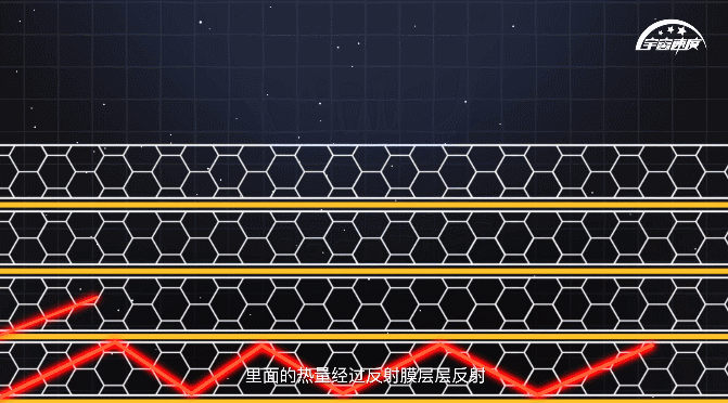 此外,天舟四号“外衣”的内部采用多层隔热组件的设计,有着极强的保暖效果。它由高反射率的膜和支撑膜的涤纶网组成,可以重复叠加形成多重结构,里面的热量经过反射膜层层反射,很难渗出表面,就能形成很高的热阻,防止热量散失。