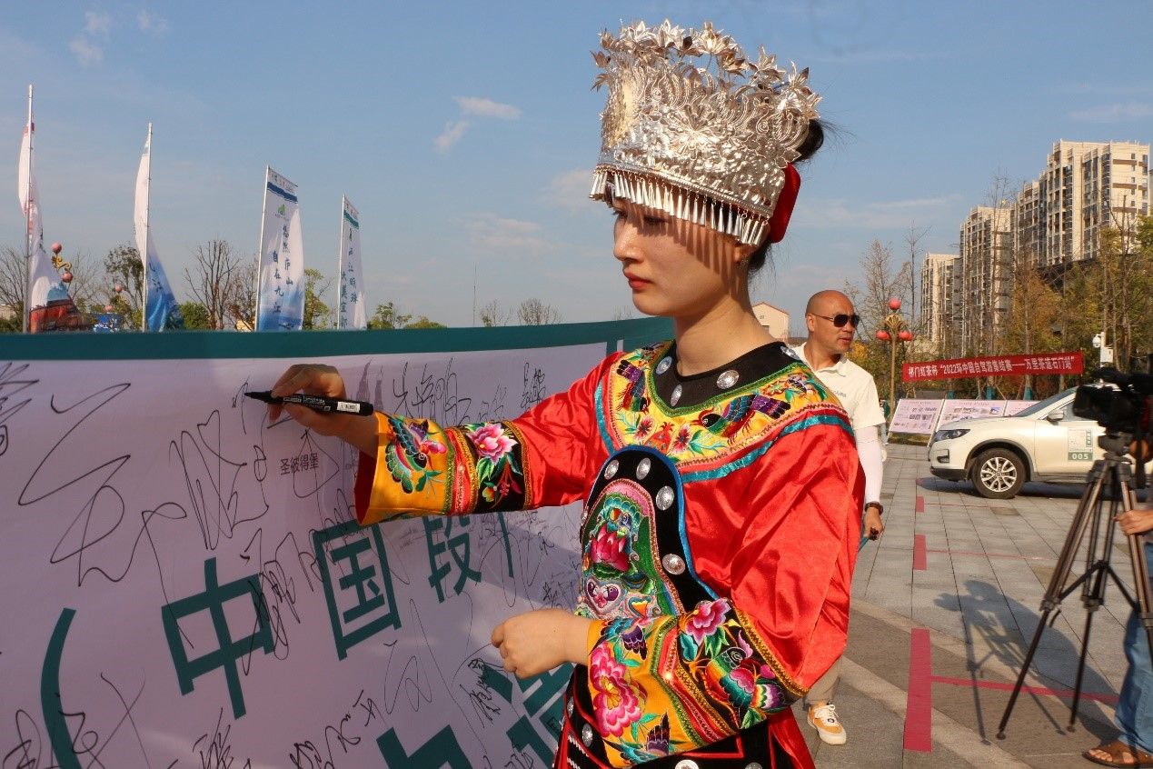 8月23日上午,在发车仪式上,石门居民自发在万里茶道申遗横幅上签名,表达对万里茶道申遗工作的大力支持与热切祝福。