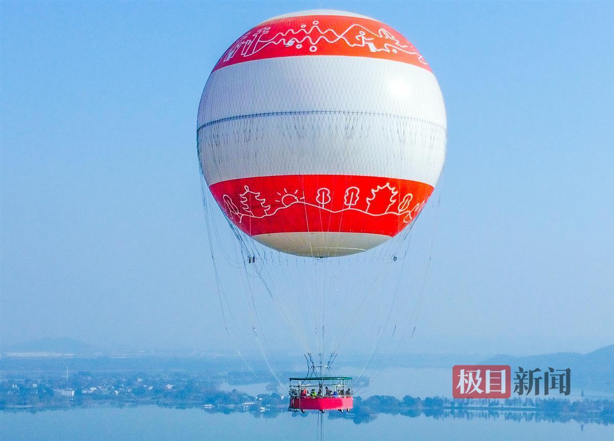 据东湖文旅集团工作人员介绍,东湖观光之星氦气球是华中地区首个观光氦气球,球下吊篮能同时容纳30人乘坐,垂直升空最高为150米,升至最高处时,游客可从“上帝的视角”360度全方位俯瞰东湖美丽景色及周边城市风貌,感受在空中翱翔的自由和惬意。湖光十色的东湖美景、形状各异的小岛、波光粼粼闪着金色“亮片”的湖水、平行飞过的鸟群,均在高空中一览无遗。站在高空之上,还可看到东湖绿道、帆船基地、东湖沙滩、东湖之眼、东湖游船等等各大热门景区映入眼帘的卷卷画幅,仿佛高空版的“世外桃源”,在高空中眺望城市最美天际线,赏最美夕阳,以最特别的视角,带给游客一次难忘的体验。