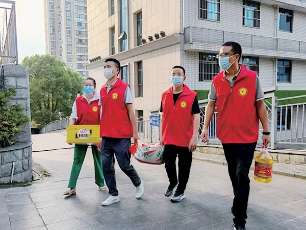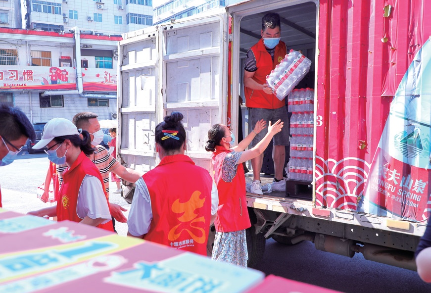 以十堰市志愿服务联合会为纽带,我市众多市民、企业的爱心在这里流转。8月13日,湖北九头鸟餐饮管理有限公司为参与疫情防控的志愿者捐赠爱心晚餐300份。14日,东岳路兄弟江湖菜餐饮店老板周鹏停业不停工,带领员工精心烹制300份爱心午餐,通过市志愿服务联合会发放到茅箭、张湾、经开区的对应防控点。14日下午,湖北铭骏汽车销售有限公司负责人朱邦地采购600箱矿泉水,通过团市委和市志愿服务联合会捐赠给全市防疫志愿者。