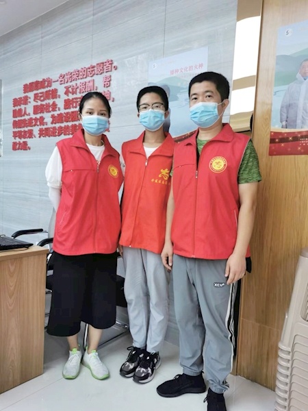 8月13日,看到招募社会志愿者的消息,我市志愿者许键洋迅速带着妻子朱群霞、大儿子许晓军前往市志愿服务联合会报到。在人手有限、工作繁重的情况下,3人严格按照工作安排,认真做好登记、接收、捐赠、发放、搬运各企业物资,运送快餐盒饭等各项工作。烈日之下搬运物资,汗水往往瞬间就湿透了上衣、渗透了红马甲,口罩也能挤出水来,但年仅15岁的许晓军毫无怨言,从未退缩。临时管控期间,许键洋一家三口平均每天工作长达13小时,家里仅留下两个孩子互相照应。