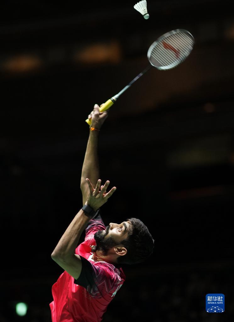 8月24日,斯里坎特·基达姆比在比赛中回球。新华社记者 张笑宇 摄