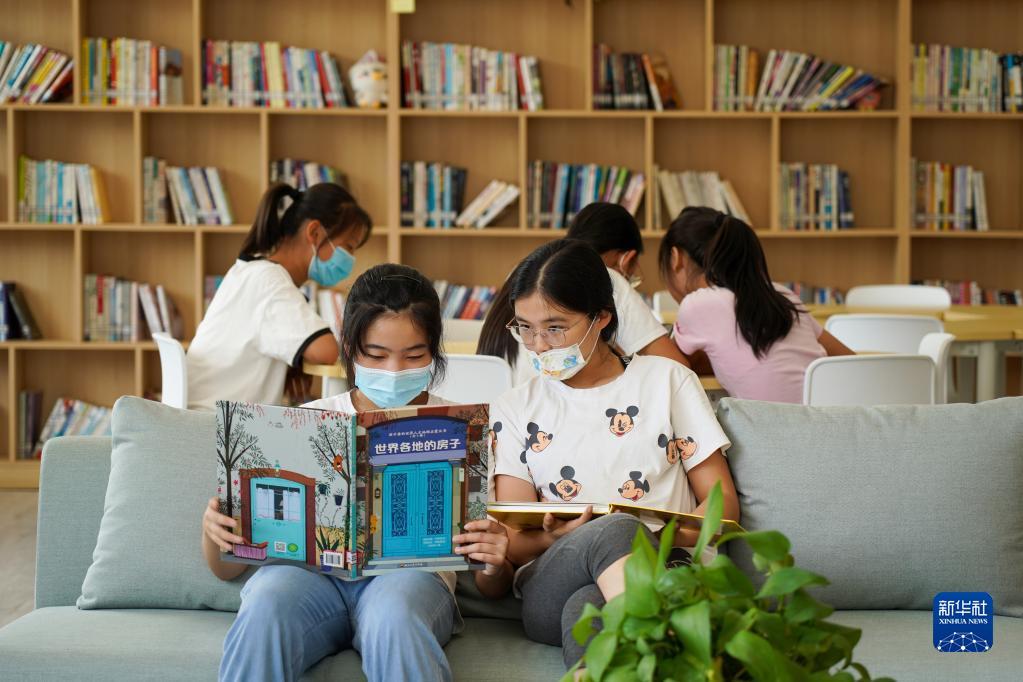 8月24日,威海市魏桥社区的孩子在社区儿童生活馆内阅读。