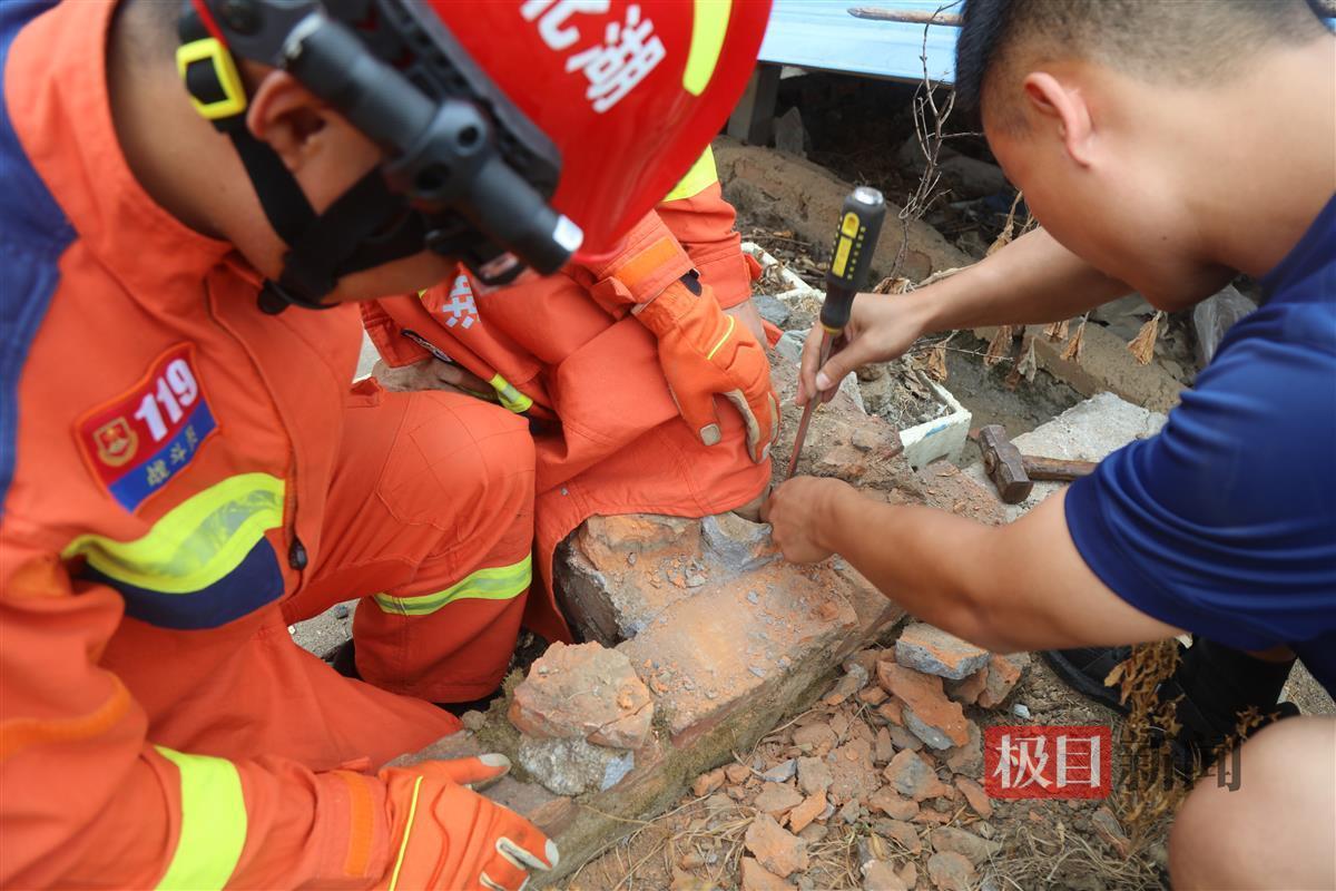 了解现场情况后,现场指挥员果断下达作战命令,安排一名消防救援人员安抚被困人员紧张、恐惧情绪,并用衣物给被困女子做好保护,随后2名消防救援人员利用手动破拆工具组对被卡位置周围建筑砖柱进行破拆凿碎,扩大洞口空间,再将女子的手臂拔出来。最终,经过约15分钟的紧张处置,成功将被困女子救出。