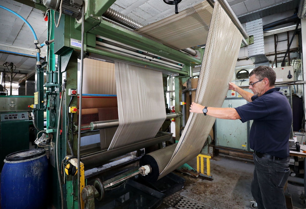 ↑8月11日,工人在英国麦克尔斯菲尔德一家丝绸工厂内工作。