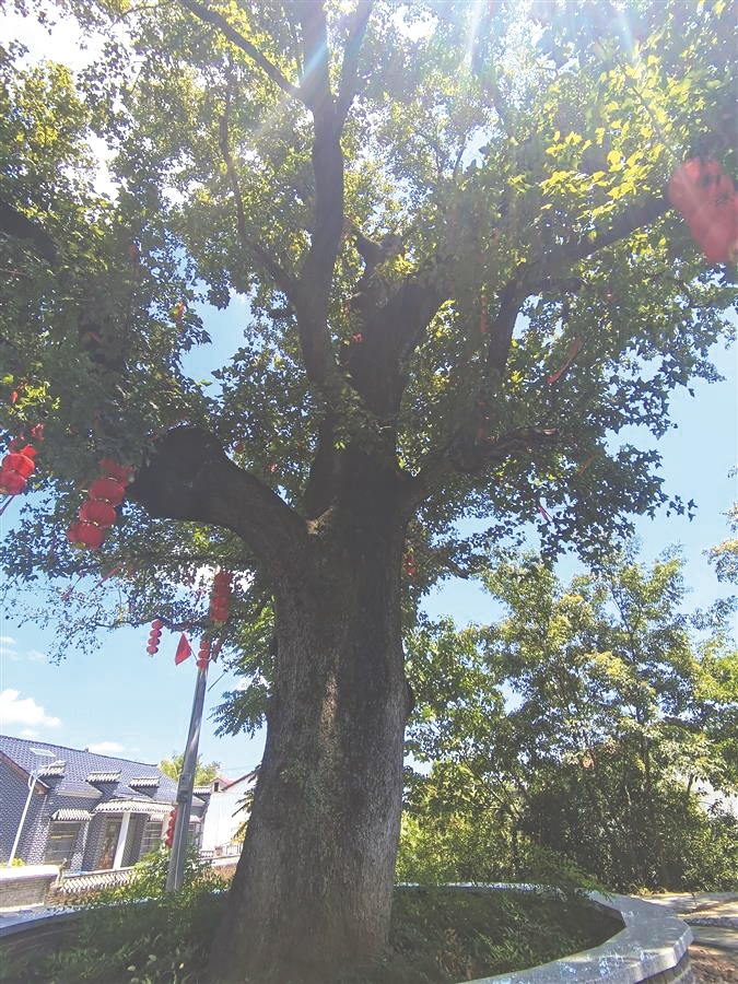 一棵高大的枫树遮天蔽日、葱郁翠绿。树干直径约2米,需要3人合抱,树龄638年,为湖北省一级保护古树名木。
