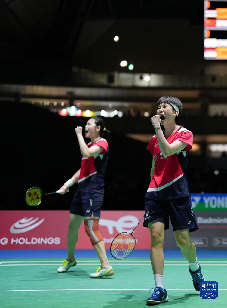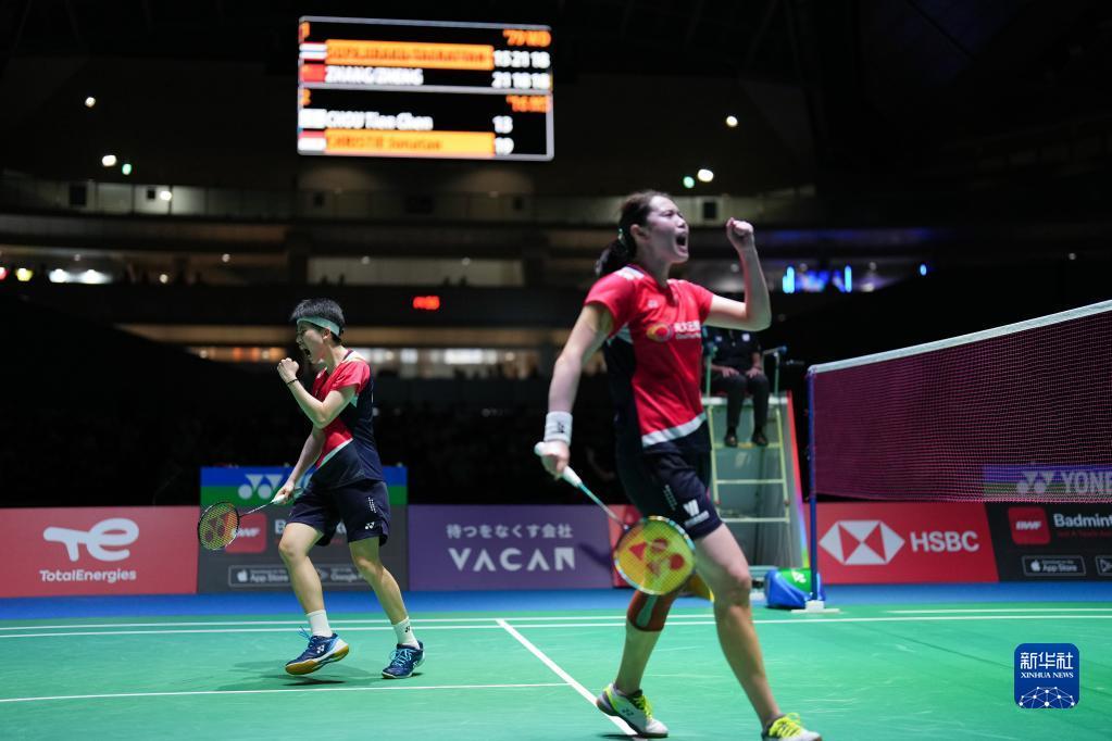 8月26日,张殊贤(右)/郑雨在比赛中庆祝得分。新华社记者 张笑宇 摄