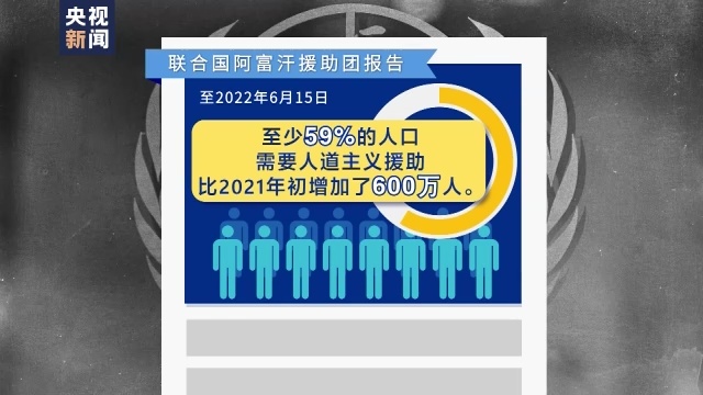阿富汗的人道主义危机也愈演愈烈。根据联合国阿富汗援助团的报告,至2022年6月15日,至少59%的人口需要人道主义援助,比2021年初增加了600万人。儿童的状况尤其令人担忧。联合国儿童基金会预计2022年大约有110万5岁以下的阿富汗儿童患严重营养不良病症,医疗机构收治的严重急性营养不良的5岁以下儿童数量从2021年3月的18000名飙升到2022年3月的28000名。