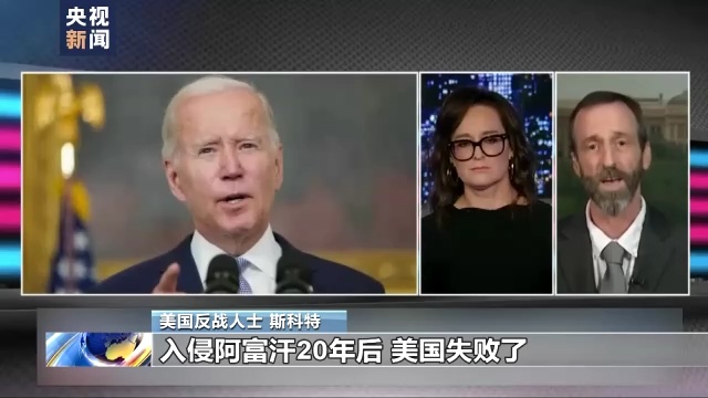 美国反战人士 斯科特:(拜登应该承认)入侵阿富汗20年后,美国失败了。在搞砸一切之前,我们得赶紧撤军,虽然他(拜登)会因此备受指责,可这是事实,但他却撒谎了,称撤军是因为在美国的支持下,阿富汗(前)政府和30万阿富汗军队表现很棒,美国赢了,这就是我们为什么撤军的原因,可这是个谎言。