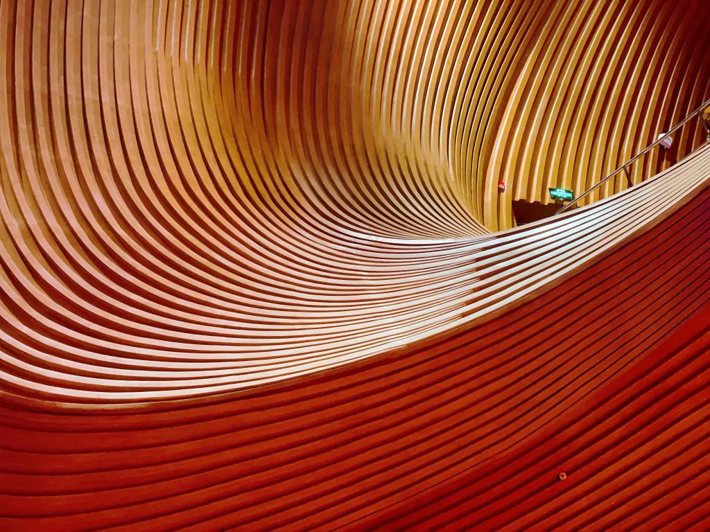 剧场四壁,手工打磨的木线条充满动感(记者 孙丽萍 摄)