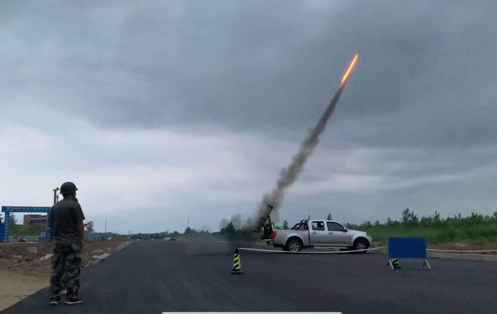27日15点10分,黄冈市人影办在路口镇作业点开展火箭人工增雨作业 气象供图