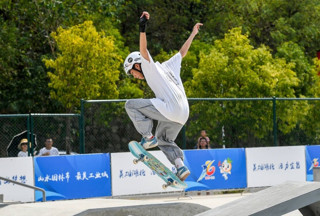 8月28日,湖北省第十六届运动会社会俱乐部类滑板比赛在黄石市开发区铁山区精彩落幕,来自武汉、荆门、黄石、随州、宜昌、恩施、荆州、咸宁、襄阳、孝感十个市州的11支代表队、共78名青少年运动员参加了本次比赛,这也是滑板比赛首次进入省运会,必将进一步推动这一初入奥运会大家庭的新兴项目在荆楚大地深入开展。