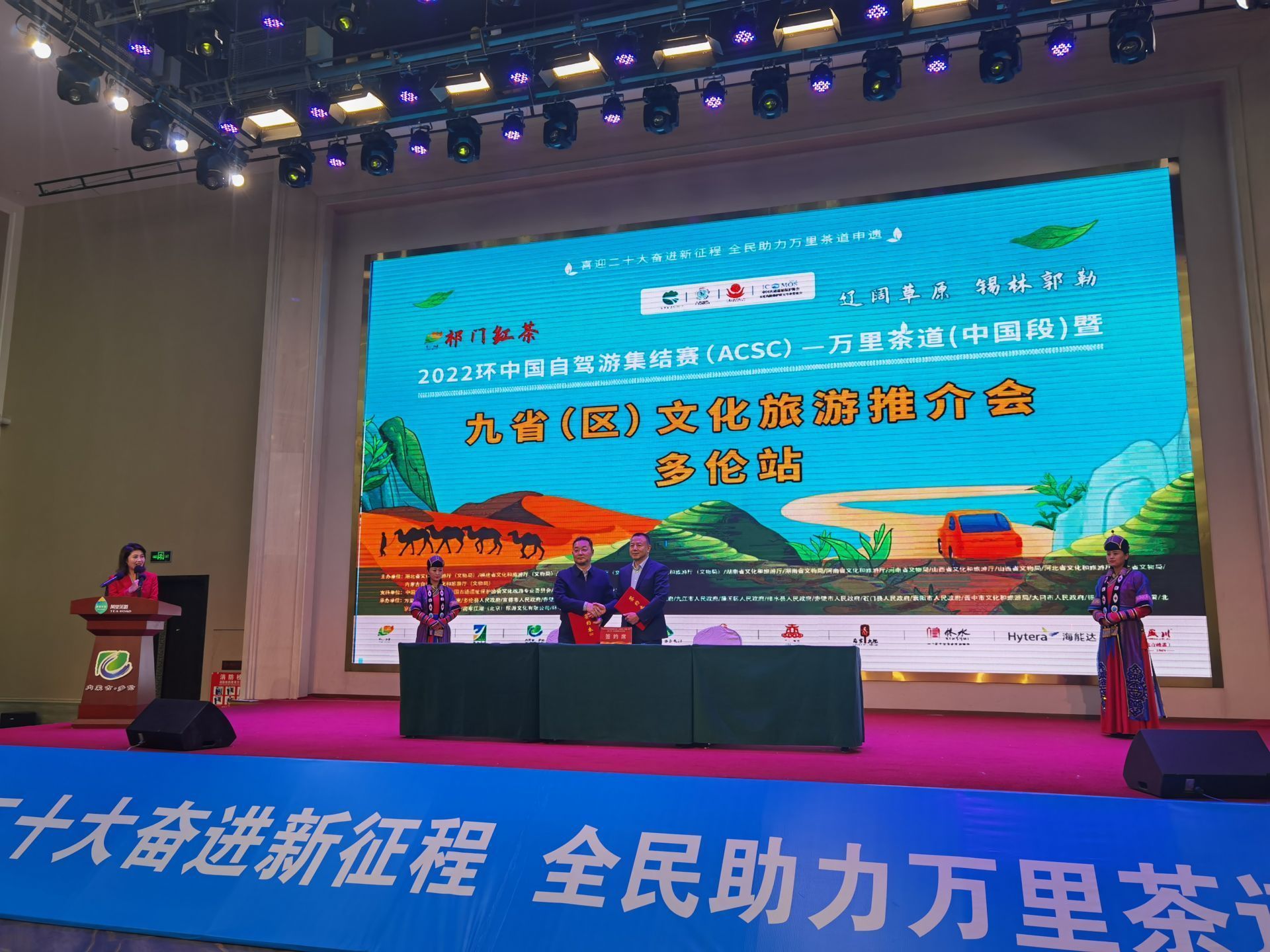 8月28日晚,为了进一步推动加强交流协作,促进共同发展,本着“增进友谊、促进合作、互惠互利、共同发展”的原则,在“祁门红茶”2022’万里茶道环中国自驾游集结赛多伦推介会上,锡林郭勒盟与江西省九江市、多伦县人民政府与湖北省赤壁市诚挚、友好协商,一致同意缔结友好城市框架协议,达成多项合作。