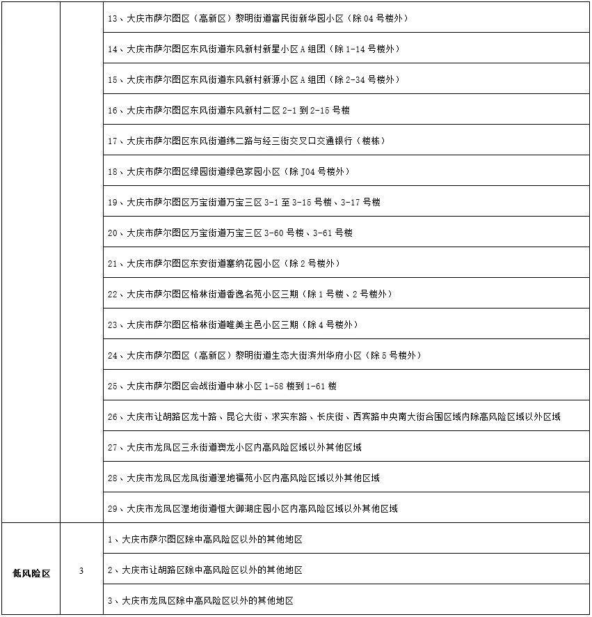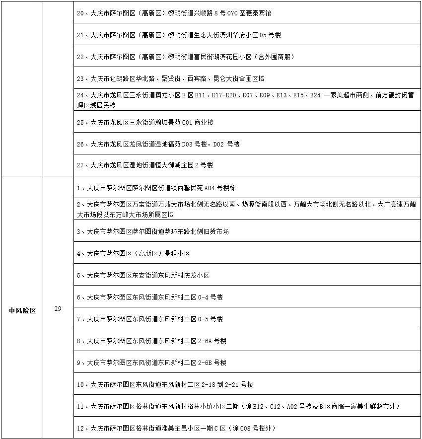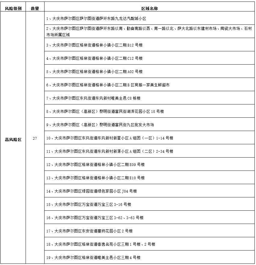 截至8月29日24时,大庆市划分高风险区27个,中风险地区29个。