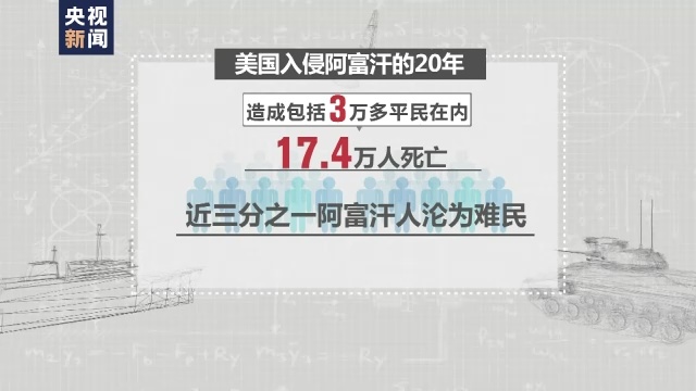 据统计,美国入侵阿富汗20年间,夺去了包括3万多平民在内的17.4万阿富汗人的生命,近三分之一阿富汗人沦为难民,超过一半的阿富汗人面临极端饥饿。长期的战争不断摧毁着阿富汗的基础设施,导致阿富汗经济发展困难、民众生活艰辛。