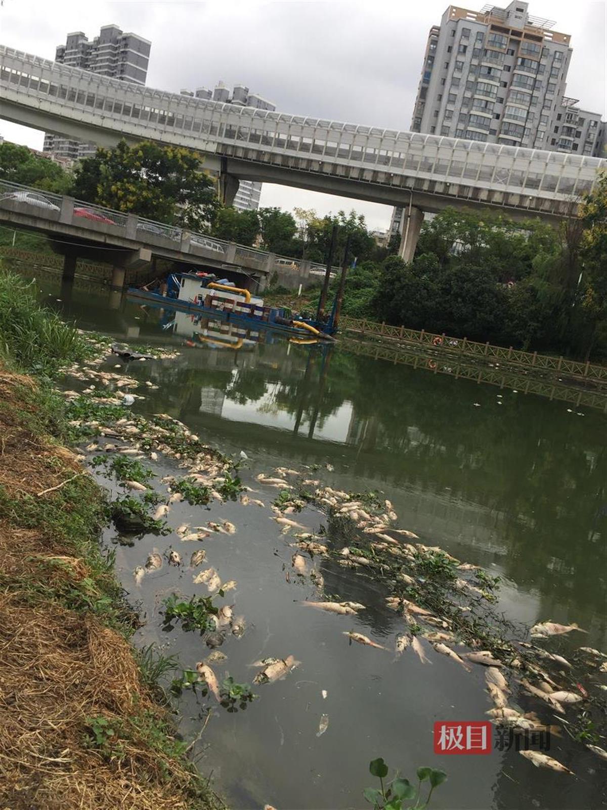 8月31日,极目新闻曾报道,武汉市青山区奥山世纪城旁的罗家港水面上漂浮着大量死鱼,并有苍蝇叮咬这些死鱼,死鱼散发出浓浓臭味。