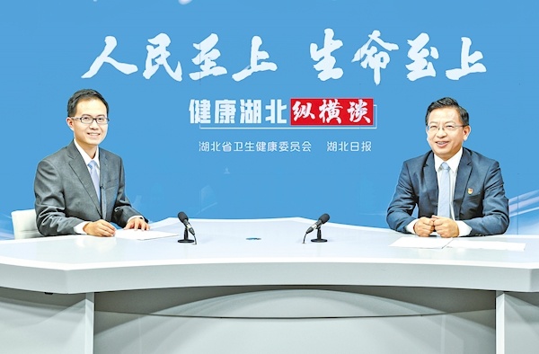 8月5日,武汉儿童医院党委书记邵剑波(右)做客湖北日报健康湖北纵横谈。 (湖北日报全媒记者 朱熙勇 摄)\