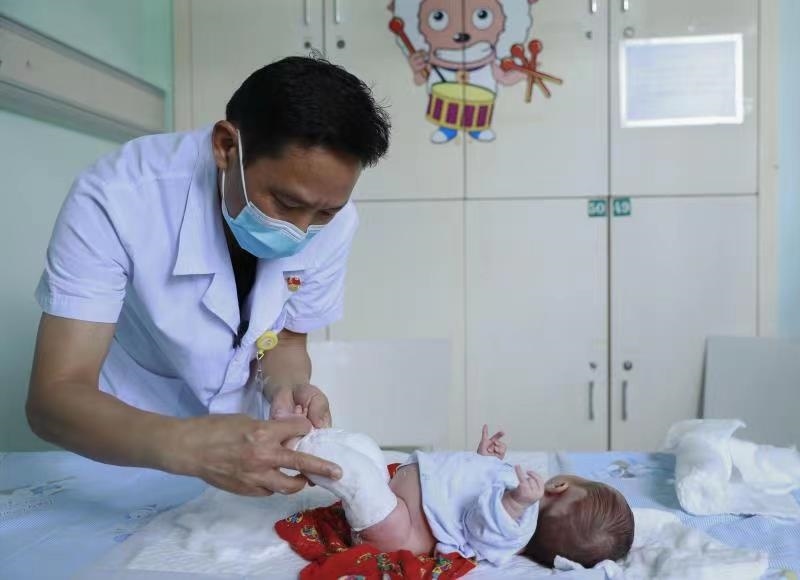 沈先涛主任给孩子打石膏,调整膝关节屈曲角度 通讯员张祖国供图