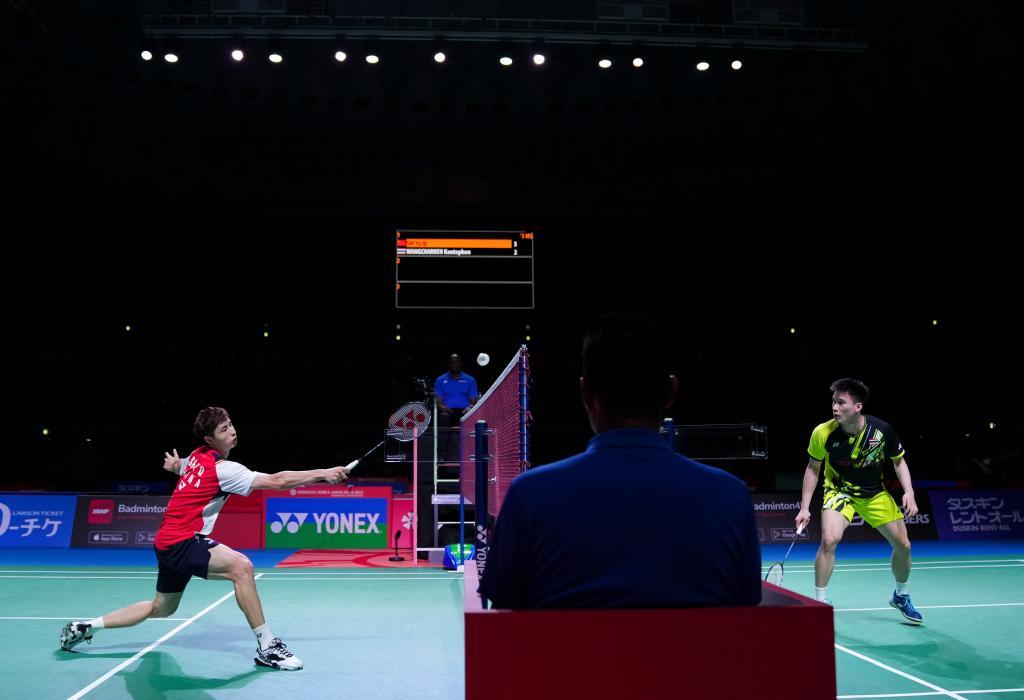 9月2日,石宇奇(左)和王高伦在比赛中。新华社记者 张笑宇 摄