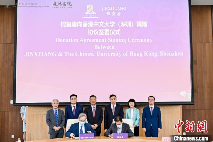 图为锦玺唐向香港中文大学(深圳)捐赠协议签署仪式现场。 香港中文大学(深圳) 供图