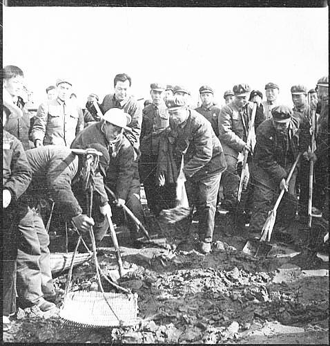 在张体学的感召下,十万建设大军争分夺秒,日夜奋战。大家喊着号子“小扁担,三尺三,千担万担不歇肩,为了建成大围堰,一担挑走两座山”,仅4个月就完成一期工程上下游围堰建设。