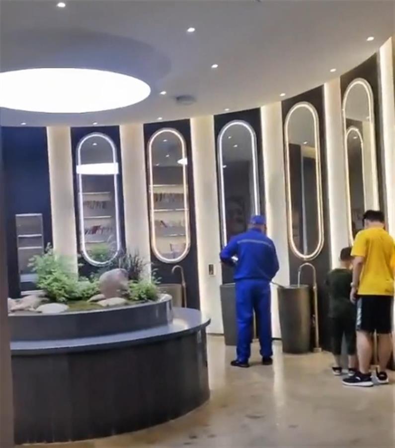 一段现场视频显示,镜头从一个红砖水泥墙的男厕入口进入。进入厕所后,里面有一个公共的大堂区域,供游客洗手、休息,还有不少书籍,供游客阅读;另一段视频中,在厕所的女厕出入口,走出了一名男游客。当时,拍摄者带着疑惑进了厕所,才明天男厕和女厕两个入口,进入的是同一个大堂。
