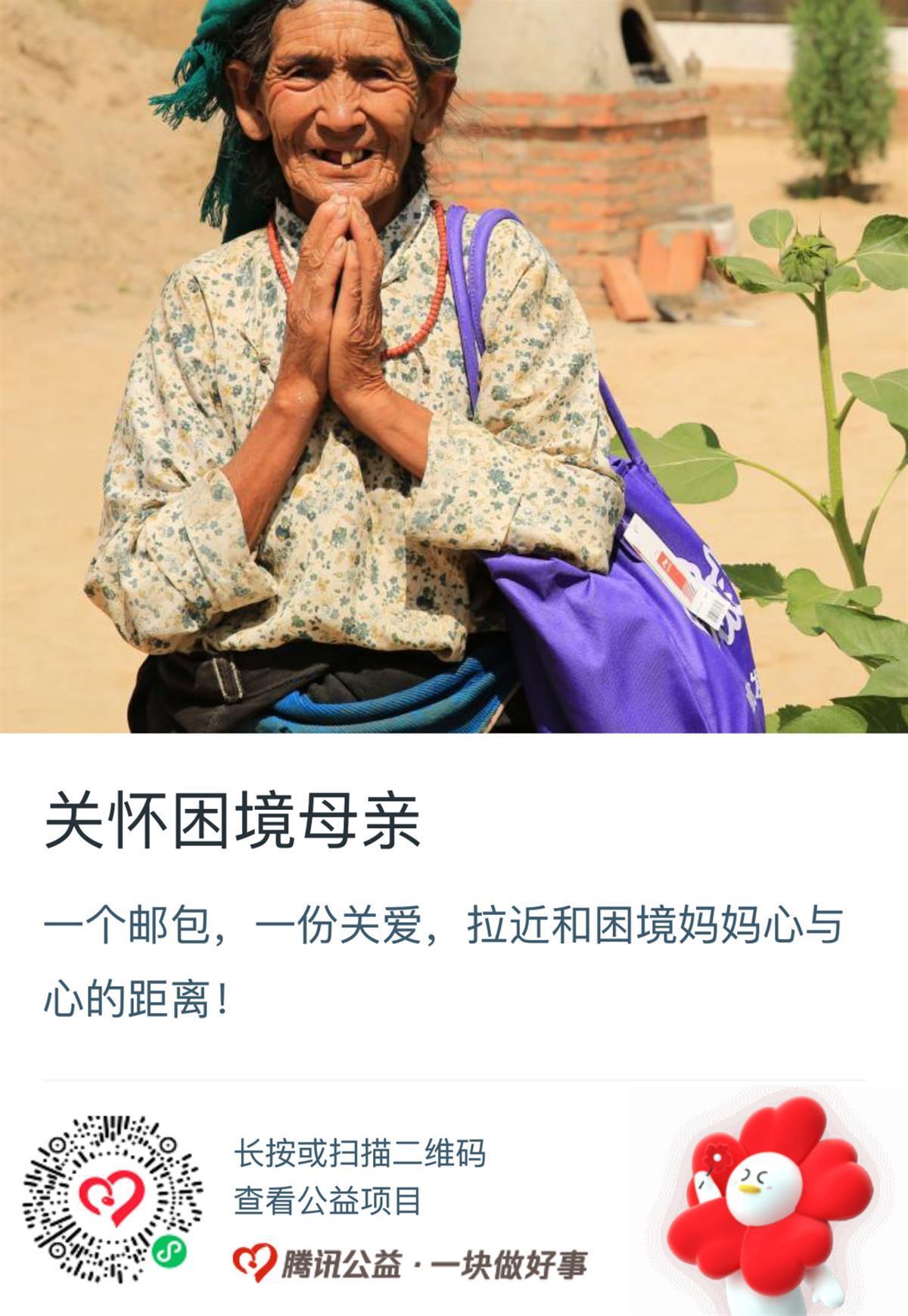 一个邮包,一份关爱。中国妇女发展基金会“母亲邮包”公益项目自2012年5月启动至2020年12月,累计实施项目资金1.7649亿元,共为31个省区市的困境母亲及家庭发放母亲邮包98万余个。“母亲邮包”分为价值200元的“母亲暖心包”和价值300元的“母亲家庭健康包”,并可结合捐赠人需求和实际设置专属定制包。项目捐款可赢取腾讯公益随机配捐。同时,中国妇女发展基金会按照1:1 的项目资金配比进行限额配捐支持。