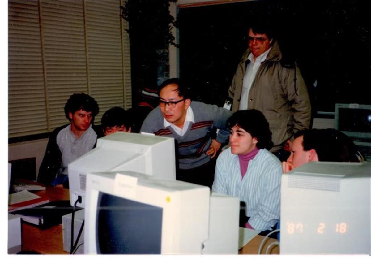 李德群在康奈尔大学协助指导学生们用图形软件设计产品