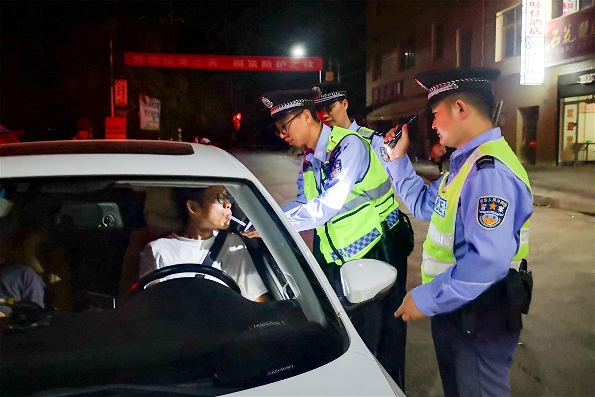 刘善鹏(右二)与同事正在查酒驾