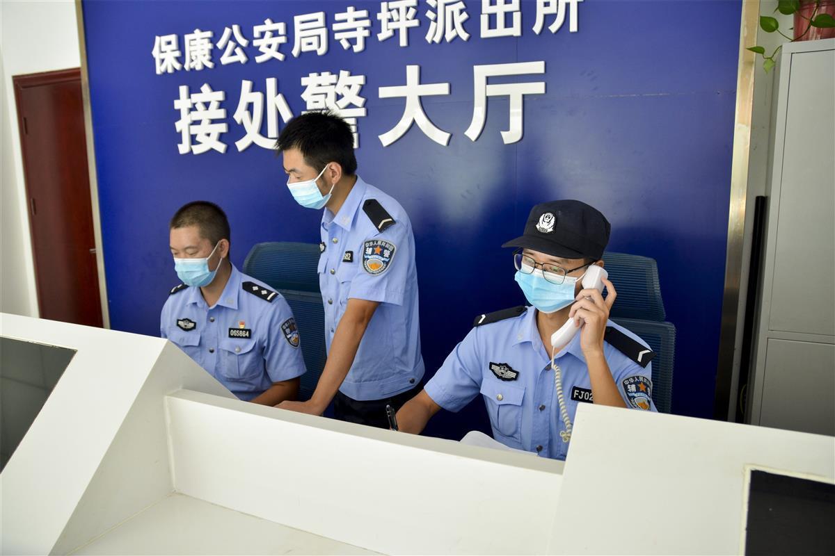 刘善鹏(右一)正在受理群众报警