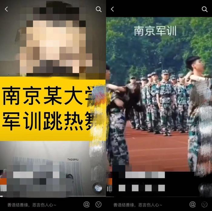 9月5日,中新网联系上了南京体育学院宣传部,工作人员告诉中新网,视频内容是2022年6月中旬,学校2020级武术与艺术学院学生在军训间隙进行的班级特色及专业展示。