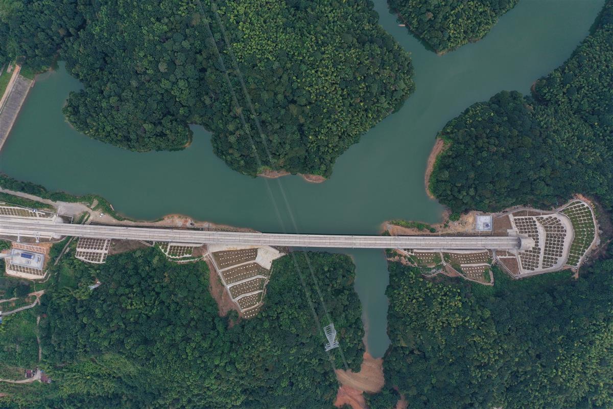 渝厦高铁(益长段)是国铁集团第一个主导、全路实行单价承包模式试点的高铁项目,位于湖南省西北部,沿线经过2市6县区,线路长约64.2公里,其中正线桥梁和隧道43座,桥隧比高达79.5%。全线设益阳南、宁乡西和长沙西3个车站,设计速度时速350公里。