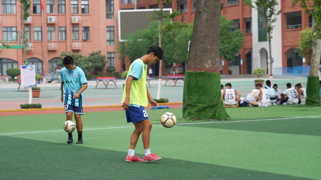 河南省新乡市铁路第二中学的学生在练习足球。新华社记者 刘振坤 摄