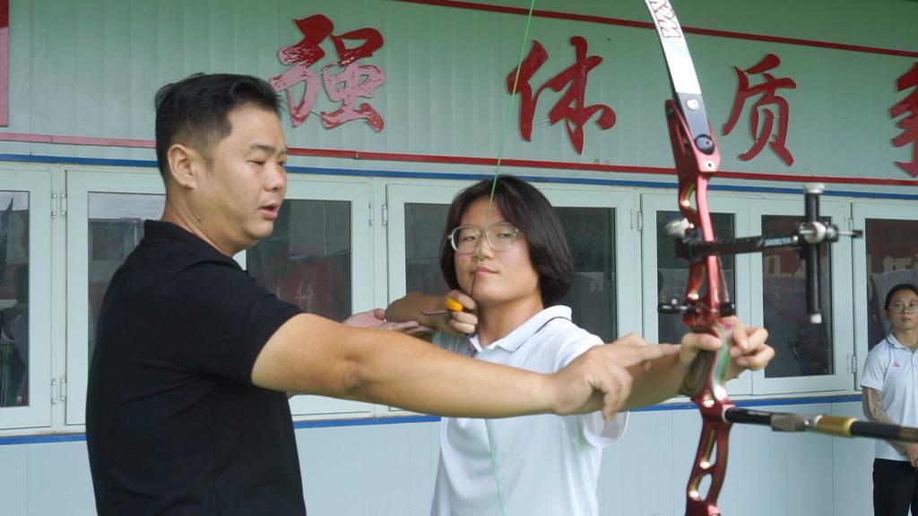 河南省新乡市铁路第二中学的老师正在指导学生射箭。新华社记者 刘振坤 摄