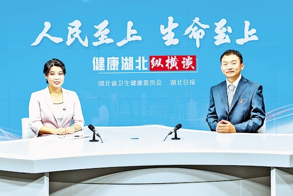 8月9日,武汉市硚口区六角亭街社区卫生服务中心党支部书记罗浩(右)做客湖北日报健康湖北纵横谈。 (湖北日报全媒记者 朱熙勇 摄)