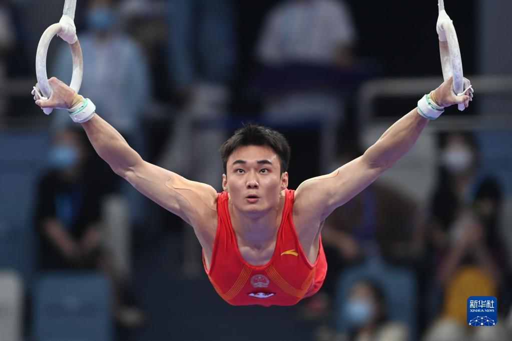 9月6日,孙炜在吊环比赛中。新华社记者 黄宗治 摄