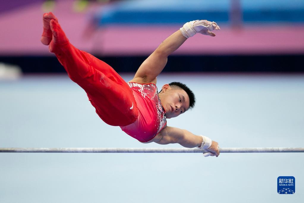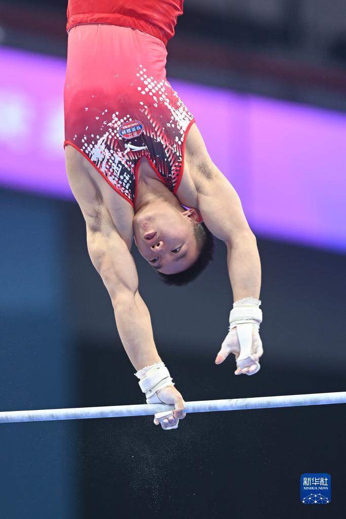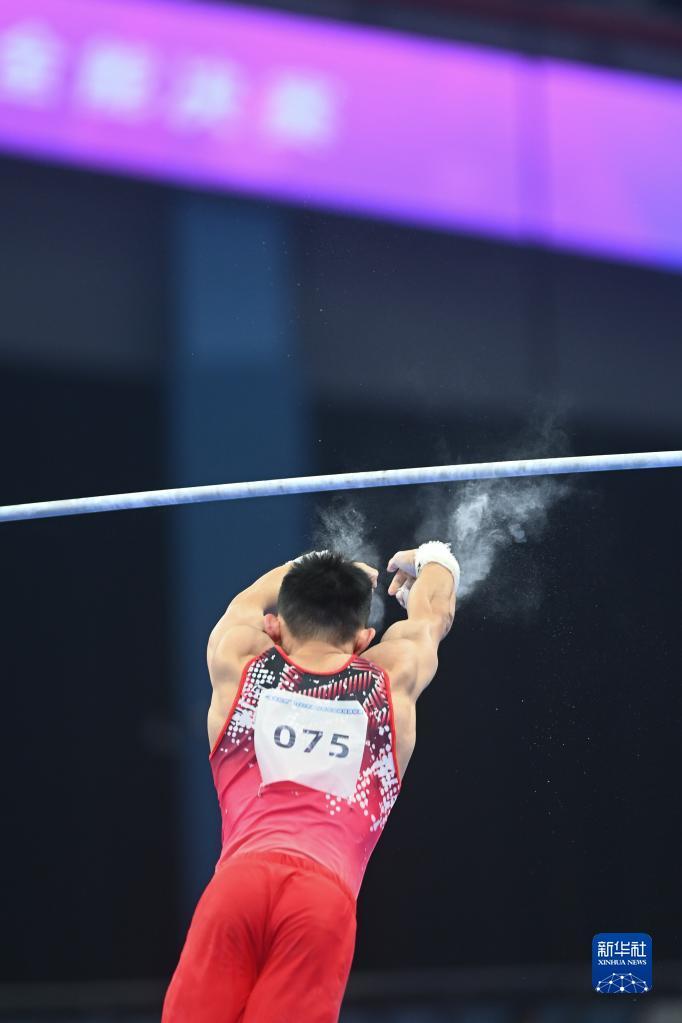 9月6日,杨皓楠在单杠比赛中。新华社记者 许雅楠 摄
