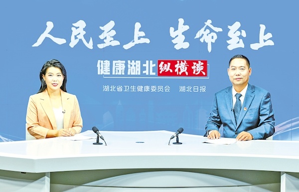 9月2日,潜江市卫生健康委员会党组书记、主任彭家洪(右)做客湖北日报健康湖北纵横谈。(湖北日报全媒记者 朱熙勇 摄)