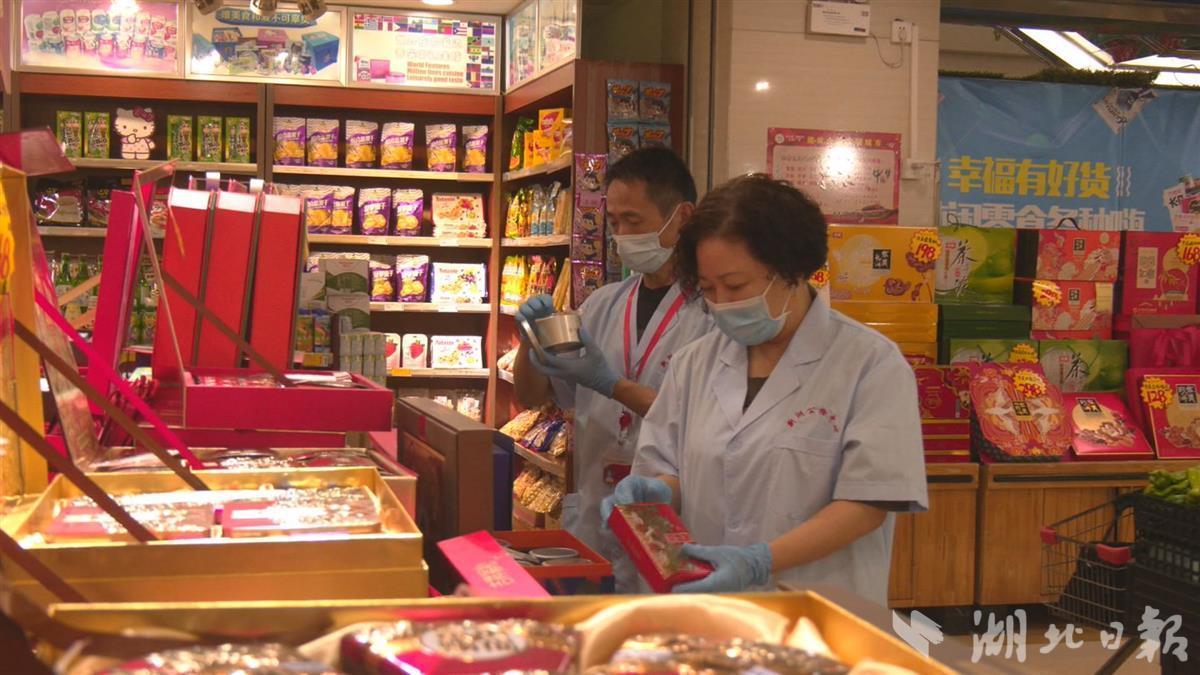 9月9日,湖北日报全媒记者随同抽检人员来到新洲区幸福时代超市,工作人员随机抽检了该超市的各式月饼、蜂蜜、大米等中秋节热销食品共计50个批次,索要了购物凭证,并为所抽食物样品填写了新洲区食品安全抽样检验单。