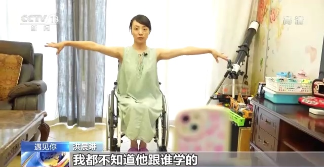 一开始,洪晨琳只敢做一些简单的单手动作,后来通过不断练习,在确保安全的前提下,已经可以加入很多双手动作,之后,她还打算尝试轮椅转动等高难度动作,让自己的舞姿重新“灵动”起来。