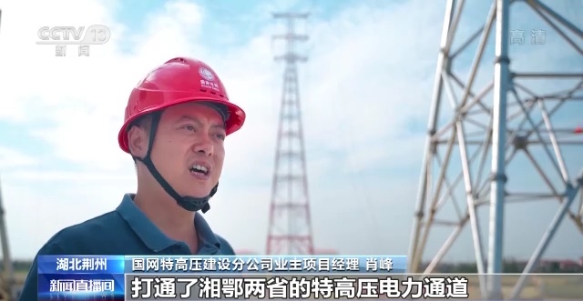 国网特高压建设分公司业主项目经理 肖峰:螺山长江大跨越是1000千伏南阳至荆门至长沙特高压工程的关键节点,打通了湘鄂两省的特高压电力通道,使得湖南与外界电力交换能力提升了40%,今后它可以为湖南地区增加600万千瓦供电能力。