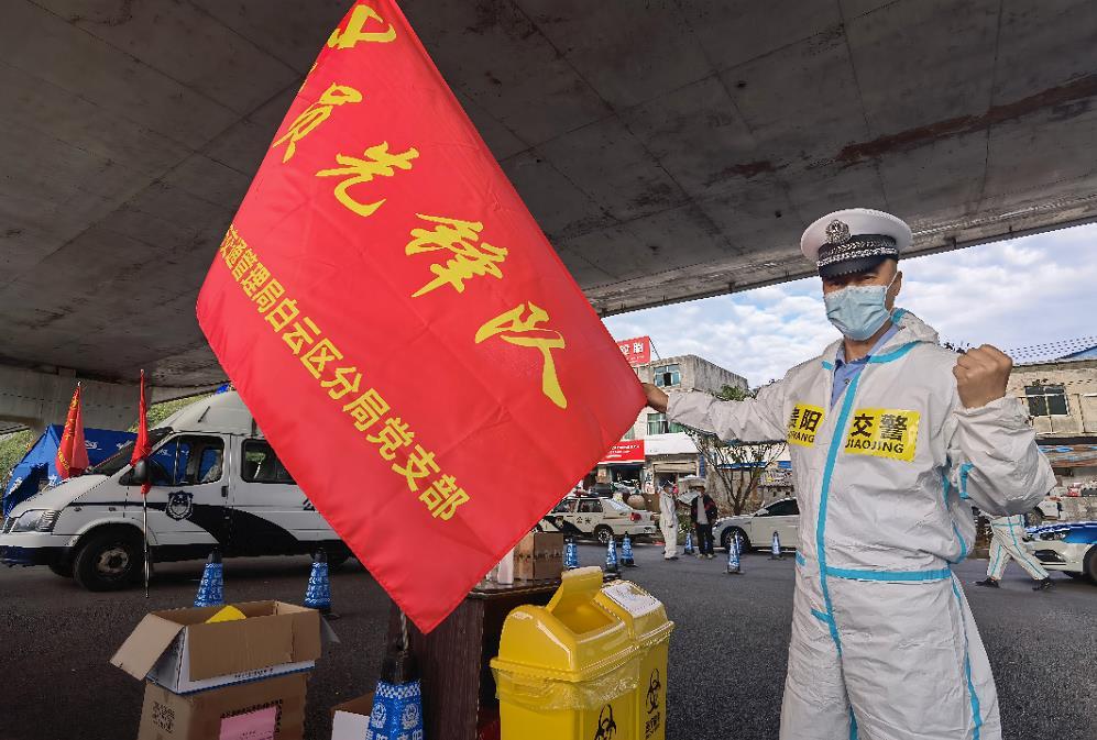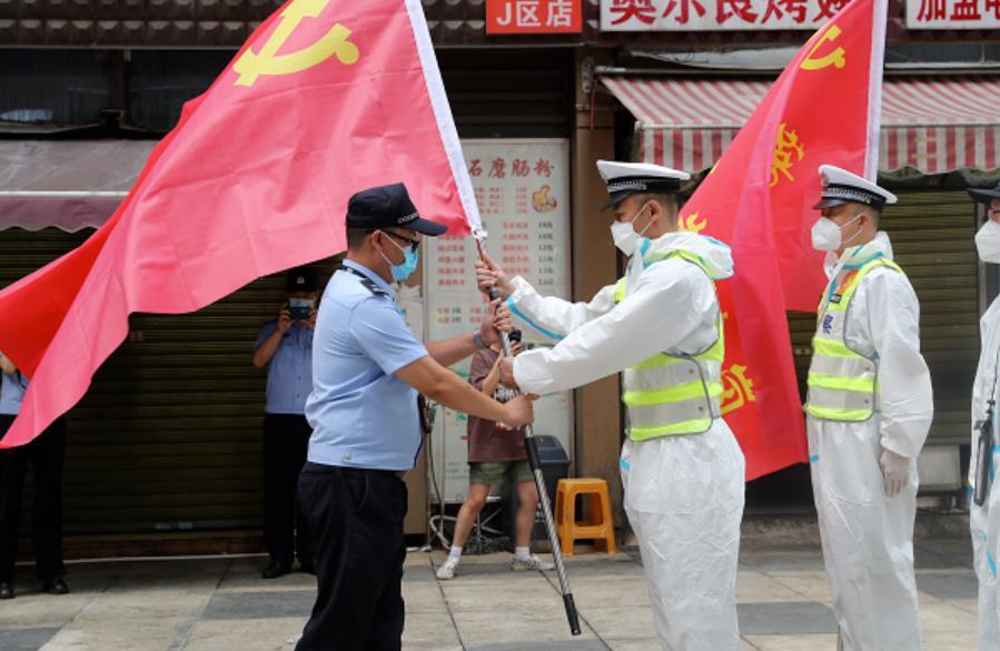 为进一步发挥党组织战斗堡垒作用和党员先锋模范作用,全力打赢疫情防控阻击战,9月8日,贵州省公安厅抗疫支援小分队在花果园高、中风险区成立临时党支部,在抗疫阵地高举党旗,为贵阳战“疫”筑起“红色堡垒”,为打赢疫情防控大仗硬仗贡献党员力量。