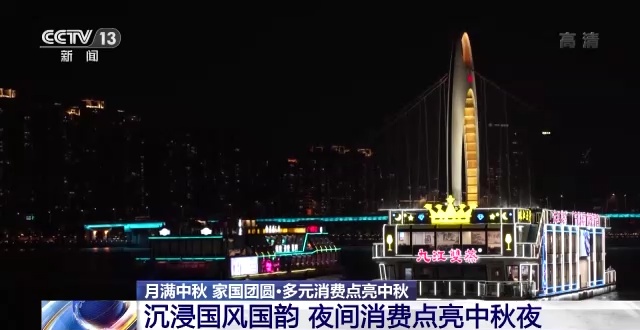 传统文化融合时尚消费,中秋假期,一些城市用新的方式点亮了城市地标。在广州,夜游珠江的项目就吸引了不少市民。