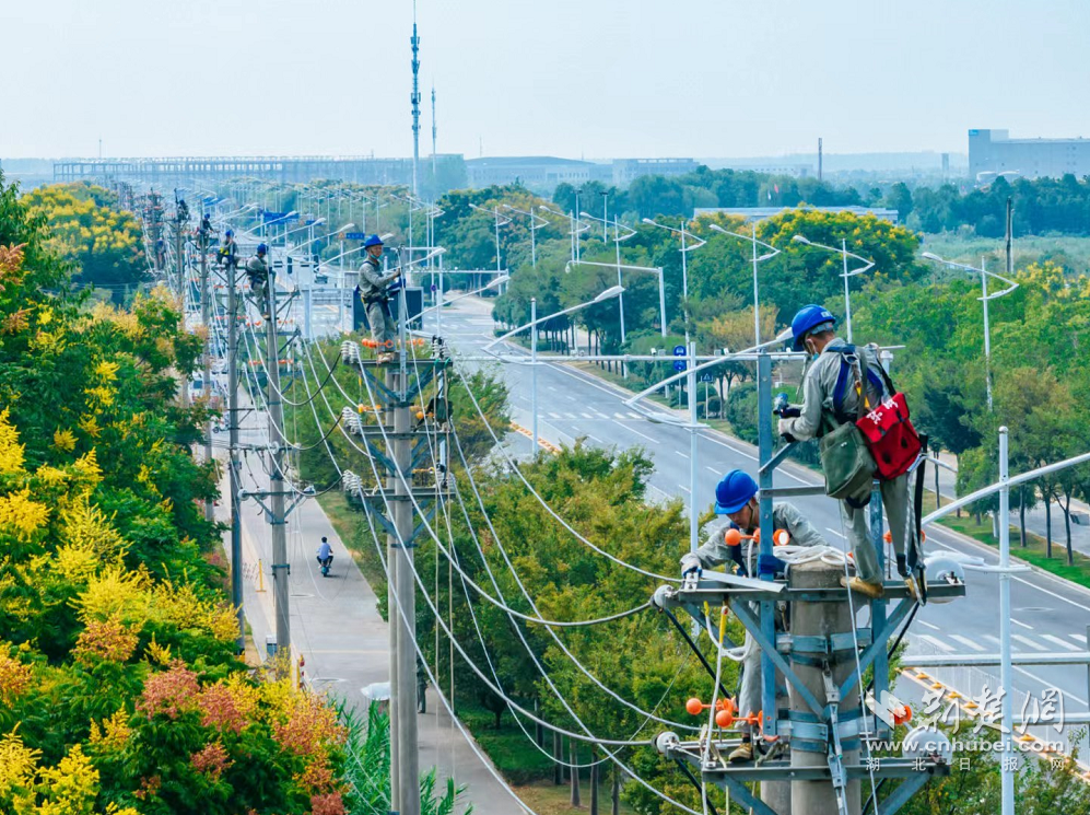 荆楚网(湖北日报网)讯(通讯员 熊音笛)9月9日上午9点,在武汉市汉南区兴城大道,43名供电作业人员正有条不紊分区架设长约3公里的10千伏配电线路架空避雷线。该项配网避雷线改造工程是国网武汉供电公司提高区域供电可靠性的重要举措,将为汉南地区汽车产业热土“振翅腾飞”提供有力供电保障。