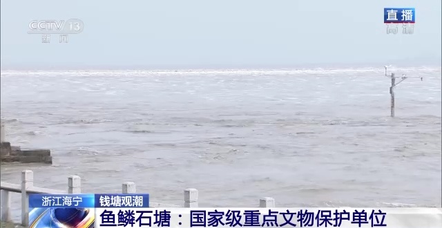 总台记者 李欣蔓:眼前看到的这个被潮水冲刷了两百多年的鱼鳞石塘,是国家级重点文物保护单位。它的建造工艺十分精巧,一般都是用长方形重达百斤、千斤的条石逐层上叠,就像鱼鳞一样,所以我们叫它“鱼鳞”石塘。潮水过去,我们明显感觉到这里的水位比刚才高出了不少,回头潮正以“一字潮”的形态继续向它来时的方向奔涌而去。