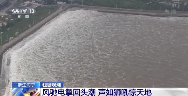 总台记者 李欣蔓:回头潮和原本逆流而上的潮水在这里相遇,也在对抗。两股潮水的叠加给我们最直观的感受,就是遇强则强的回头潮比刚才更加有气势了。“滔天浊浪排空来,翻江倒海山为摧”。翻滚的潮水搅动着江里的泥沙,击打着岸边的鱼鳞石塘。